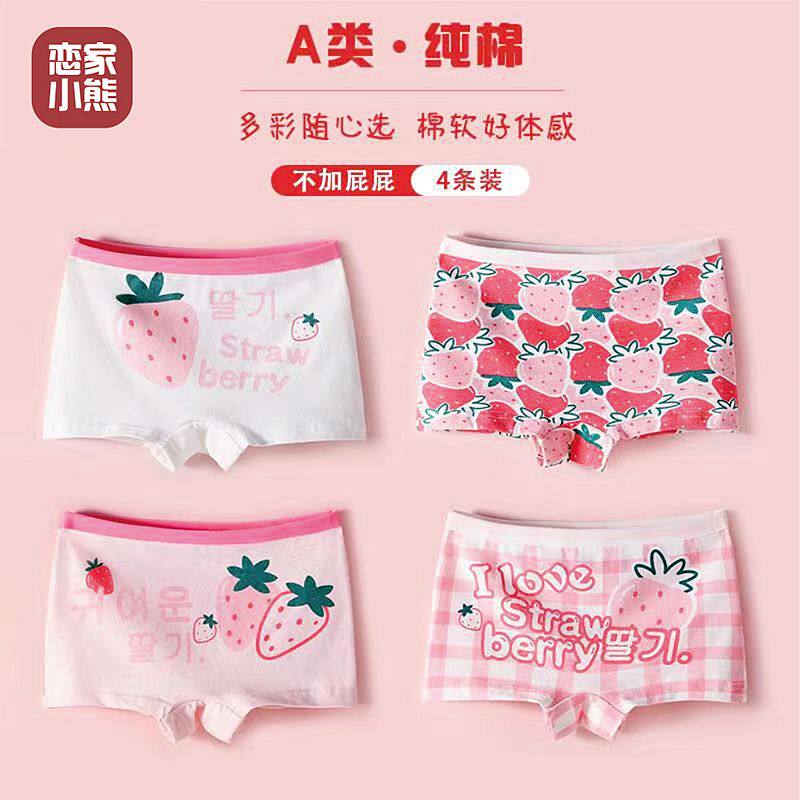 新款A类草莓精梳棉儿童内裤纯棉女童内裤宝宝平角内裤小孩四角裤