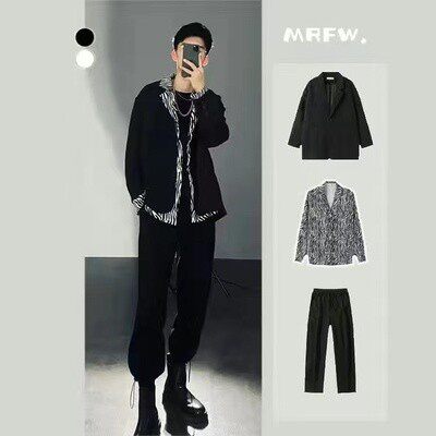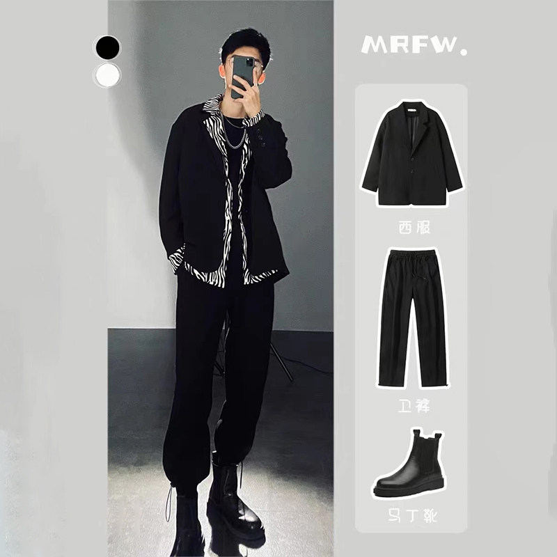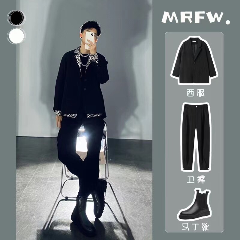 港风潮男轻熟风穿搭时尚气质宽松西服套装春秋季帅气百搭衬衫外套