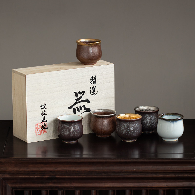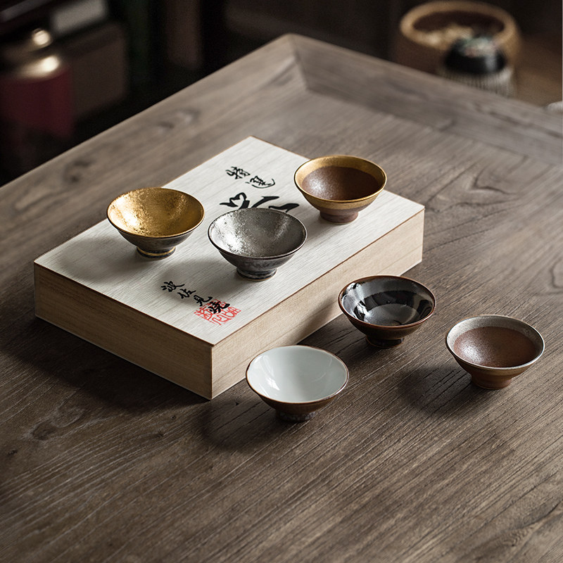 日本进口九谷烧陶瓷日式粗陶手工小酒杯茶杯品茗杯主人杯茶具套装