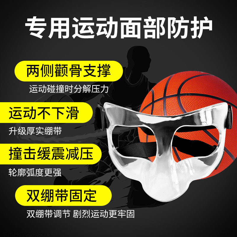篮球面具护脸护鼻面罩透明篮球运动护具足球nba面具运动防撞面具