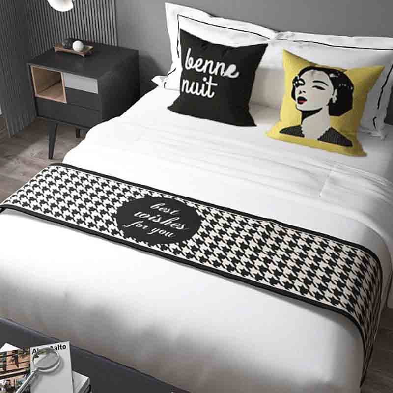 淘宝质纺原创家居工作室,质纺家居千鸟格床旗酒店床尾巾