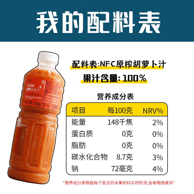天猫新味蕾食品专营店,达川冷冻胡萝卜汁果汁含量100%,果汁含量100%