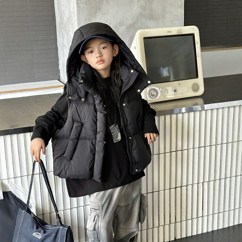淘宝环球童仓总部店,韩版儿童羽绒服马甲新款中长款男童女童中大童白鸭绒连帽坎肩背心