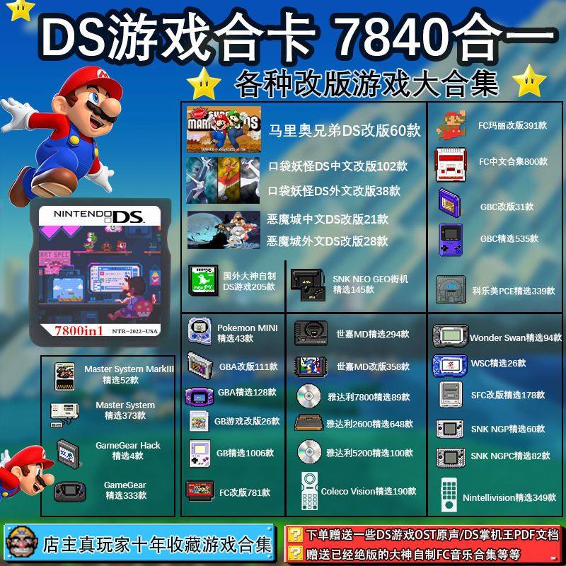 淘宝春天3C配件店,NDS游戏卡 999合一中文合卡 适用于3DS 2DS NDSL 模拟GBA GBC FC