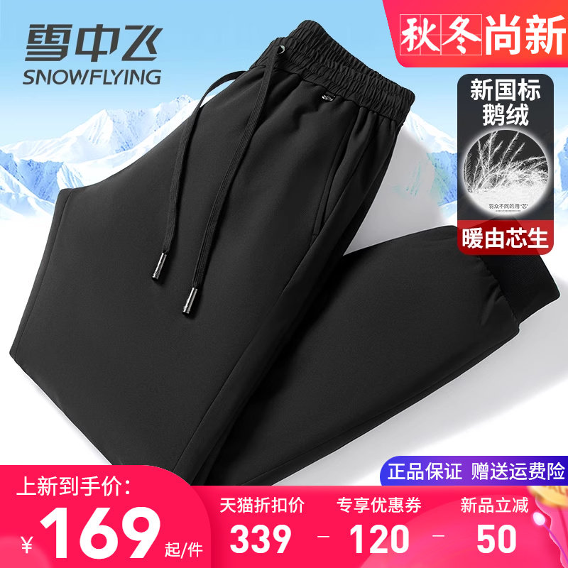 天猫雪中飞中老年旗舰店,雪中飞加厚抗寒束脚鹅绒羽绒裤,新国标大鹅绒填充,蓬松保暖不臃肿