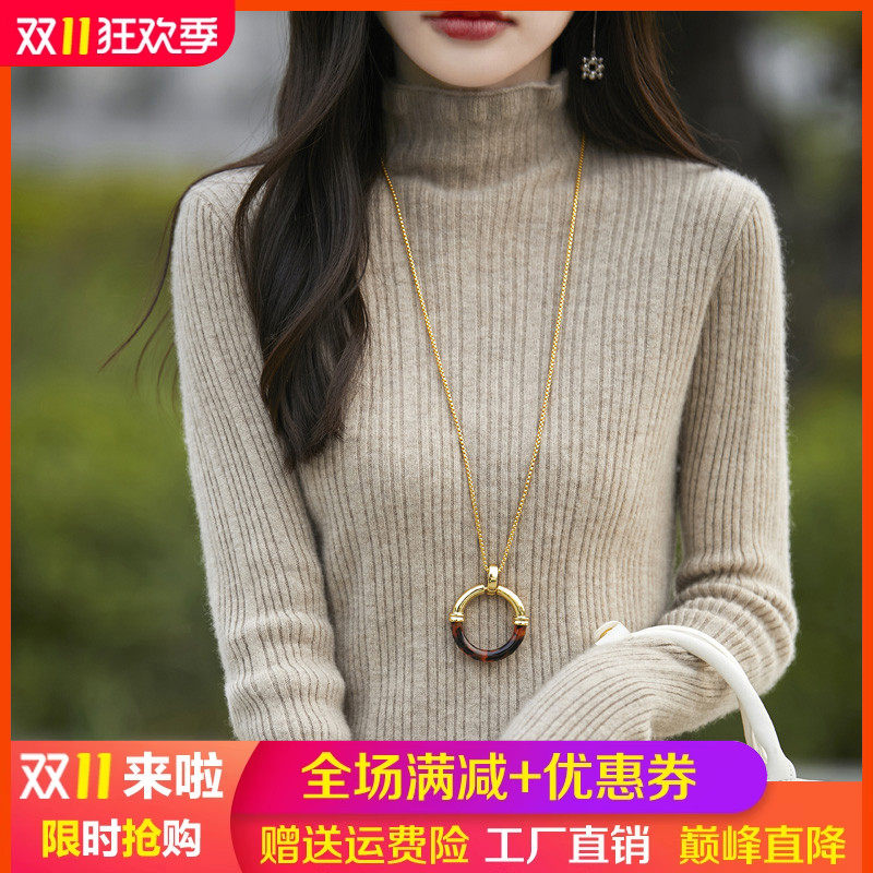 淘宝梦茜韵高端羊绒衫工厂直销店,100%纯羊绒衫花边半高领坑条毛衣