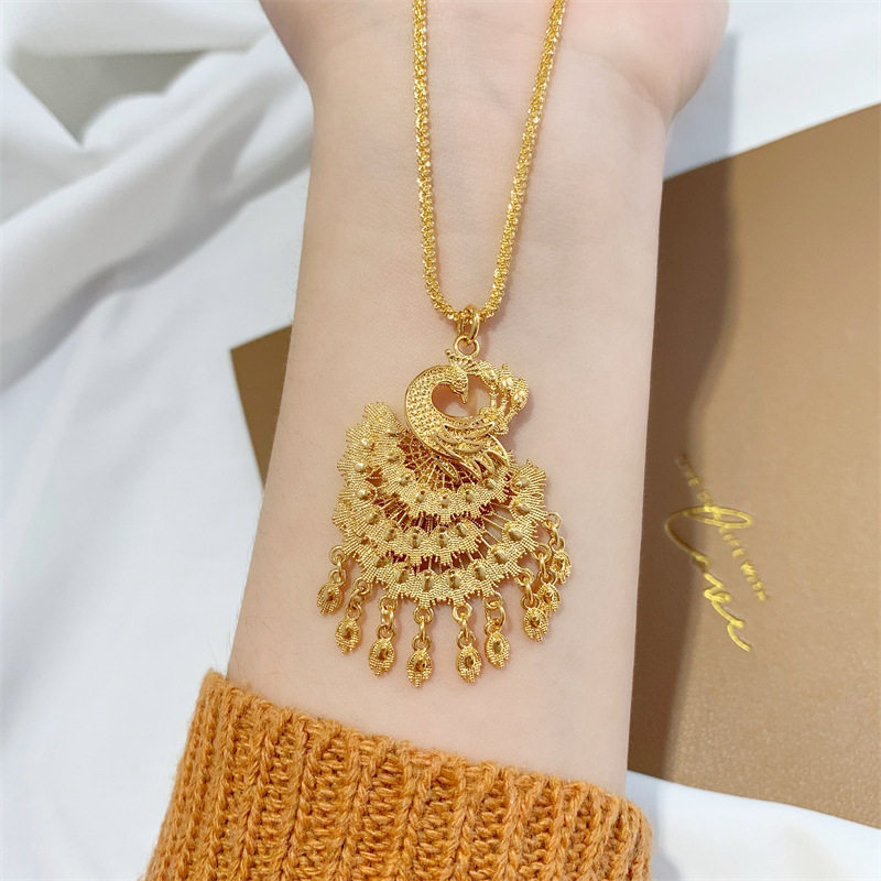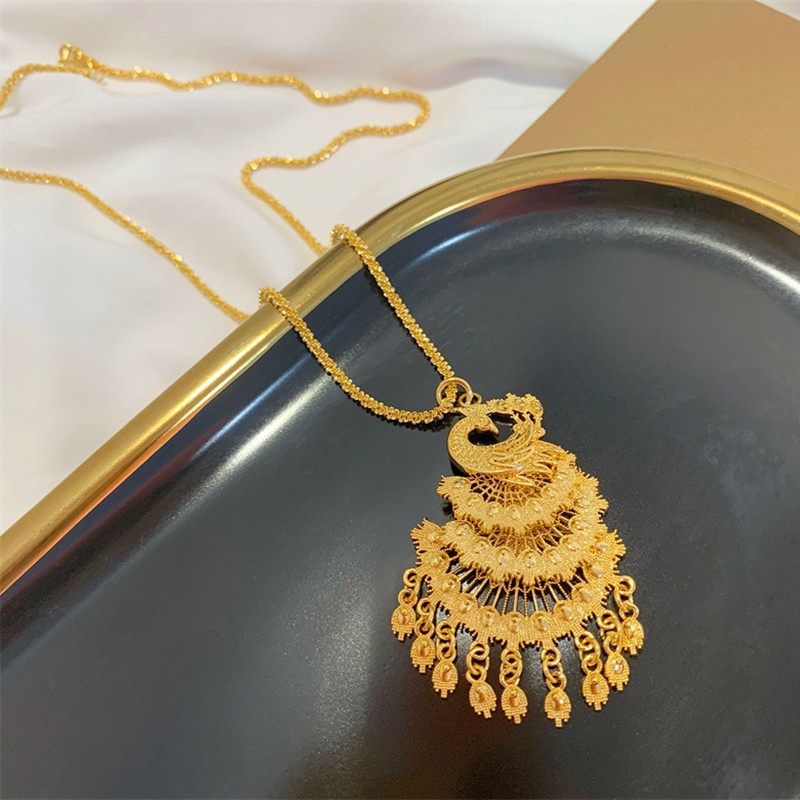 黄金孔雀项链女复古时尚24K纯金凤凰流苏…