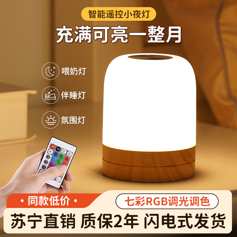 天猫苏宁易购官方旗舰店,充电小夜灯卧室睡眠灯婴儿喂奶儿童伴睡七彩氛围灯台灯床头灯383