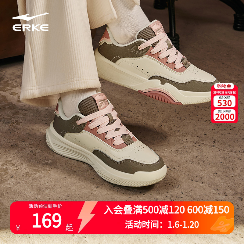 天猫鸿星尔克宝威裕达专卖店,鸿星尔克女款厚底低帮板鞋,鸿星尔克女鞋板鞋厚底复古潮休闲运动鞋子女
