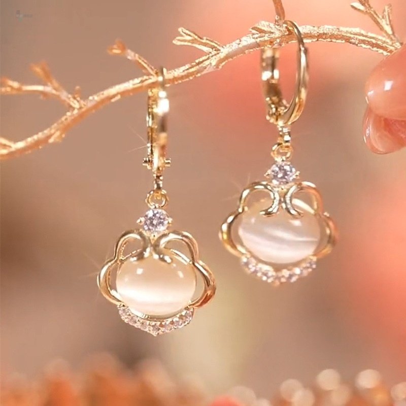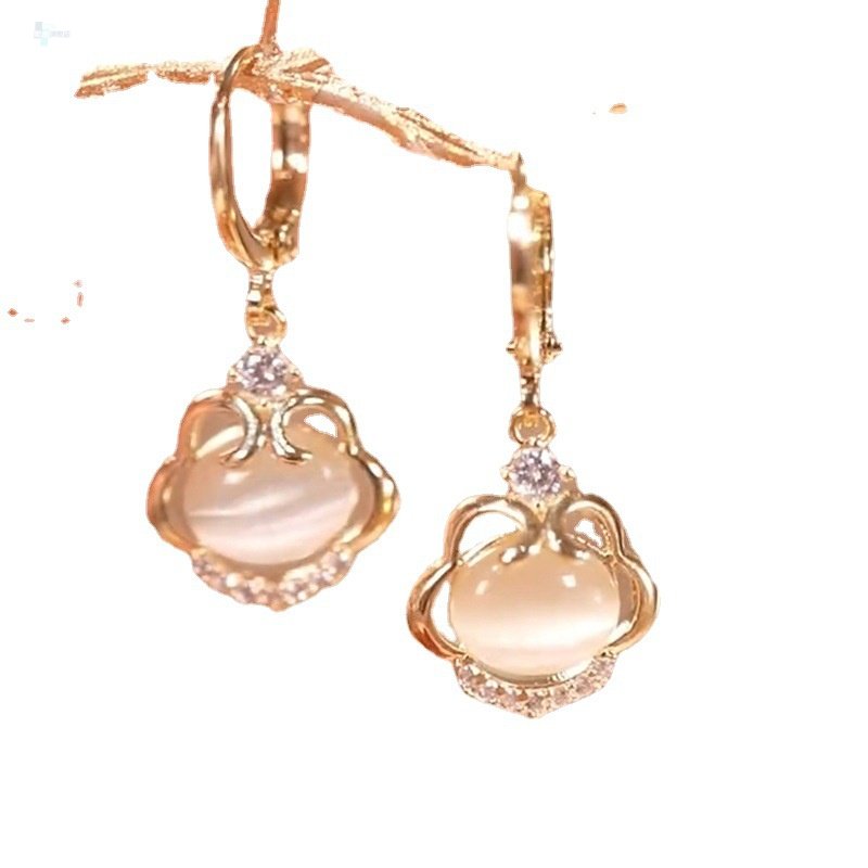 天猫敦永旗舰店,耳环女猫眼石如意锁耳扣网红百搭,收藏加购 优先发货