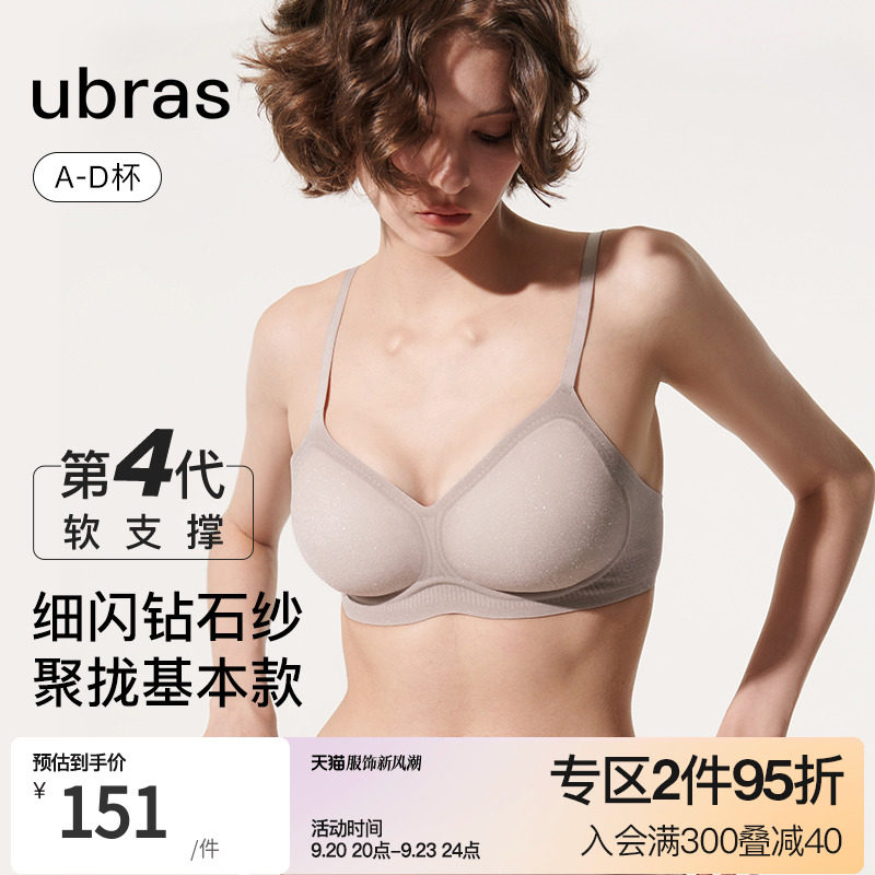 天猫ubras内衣旗舰店,ubras新款软支撑小胸聚拢细闪钻石纱无钢圈光面无痕文胸内衣女