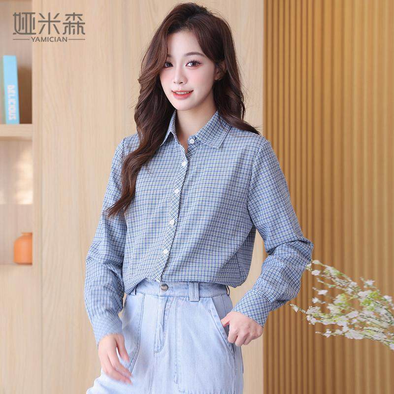淘宝娅米森女装,娅米森常规款休闲长袖棉格子衬衫