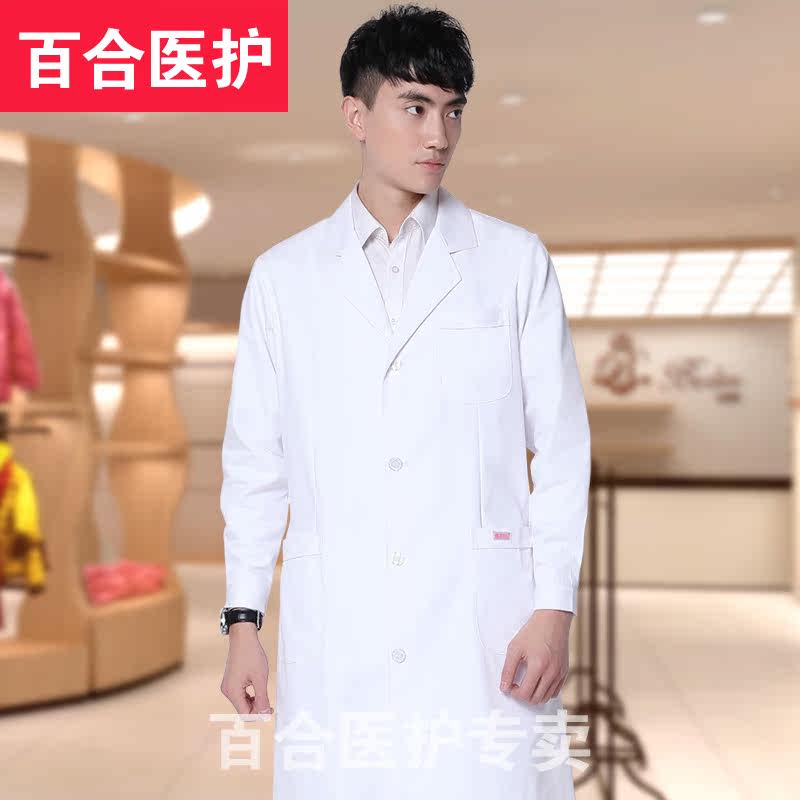 淘宝百合医护服装,冬装长袖男女医师牙医药店服白大褂