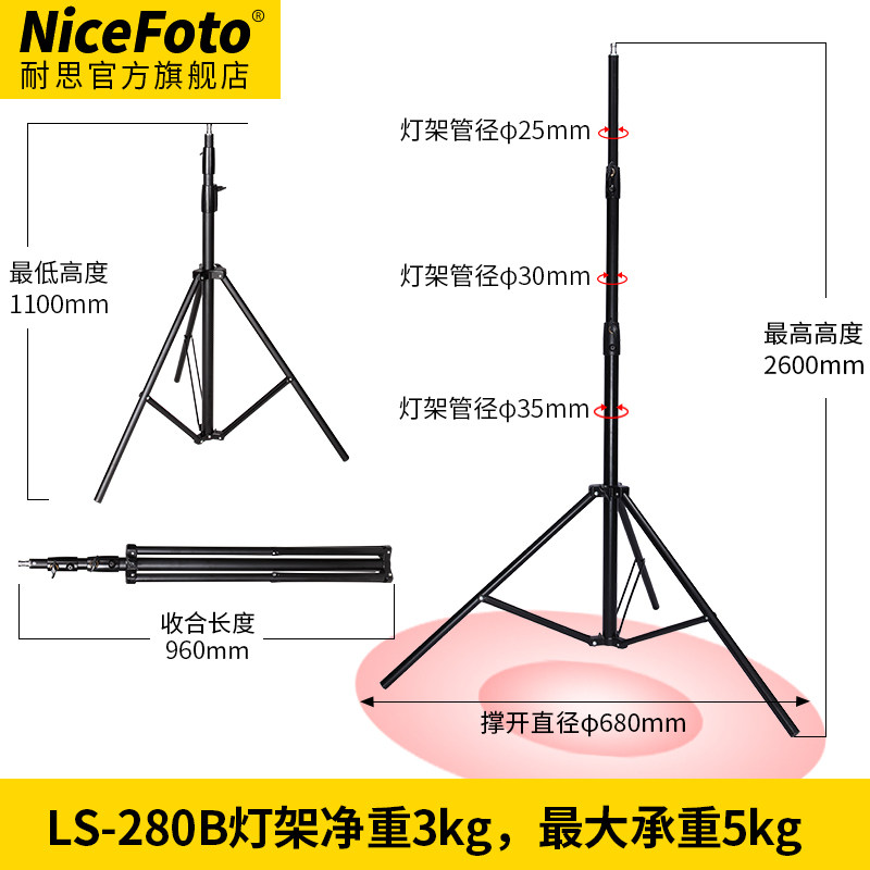 NiceFoto耐思LS-280B摄影灯架摄影棚影闪光灯支架LED摄影脚架顶灯横杆横臂灯架直播灯通用