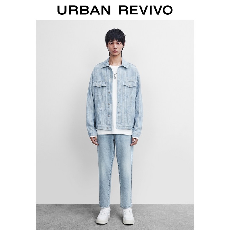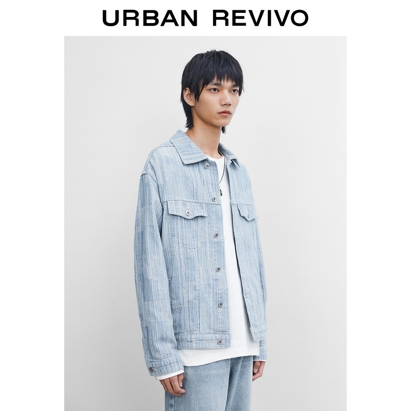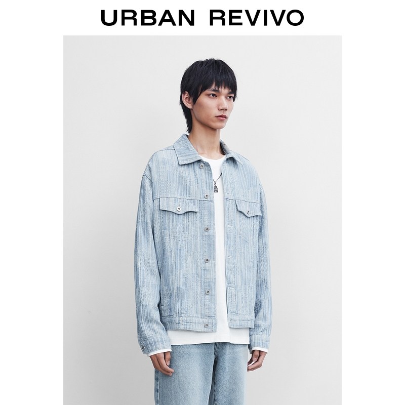 天猫UR官方旗舰店,ur新款男装时尚肌理蓝色宽松夹克,设计感牛仔面料,盾型口袋装饰