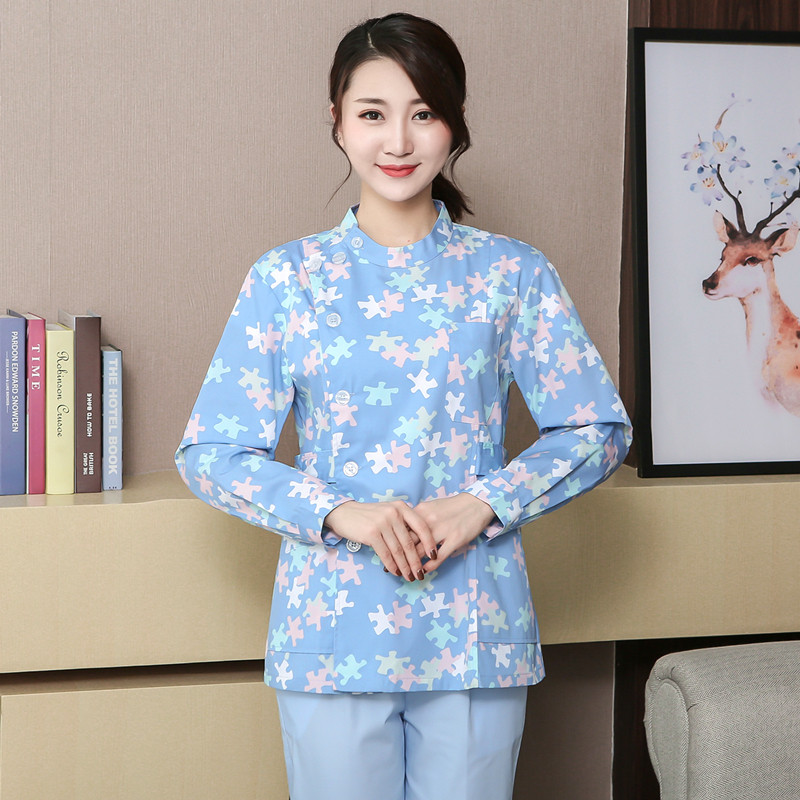 碎花护士服女秋冬季分体套装长短袖养老院母婴月嫂口腔护理工作服