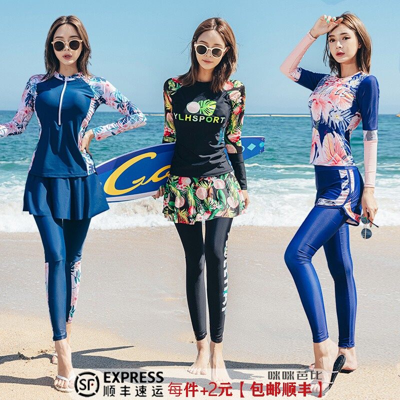 淘宝咪咪芭比日韩泳衣,女夏长袖分体水母泳装学生冲浪服