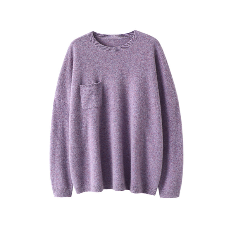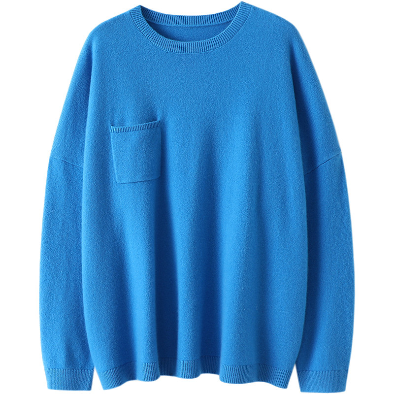 baby蓝这么显白~圆领羊绒衫女纯羊绒毛衣套头针织衫宽松慵懒秋冬