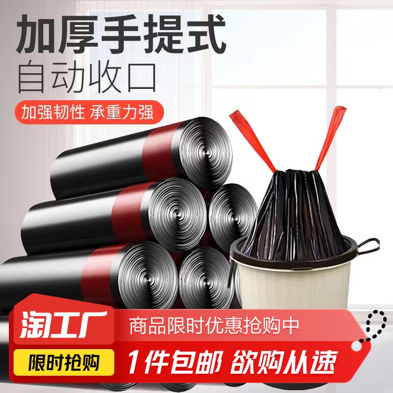 抽绳垃圾袋加厚家用手提式免撕款厨房清洁袋黑色大号塑料袋特厚券后价¥9.7淘工厂美妆直营 14 小时前
