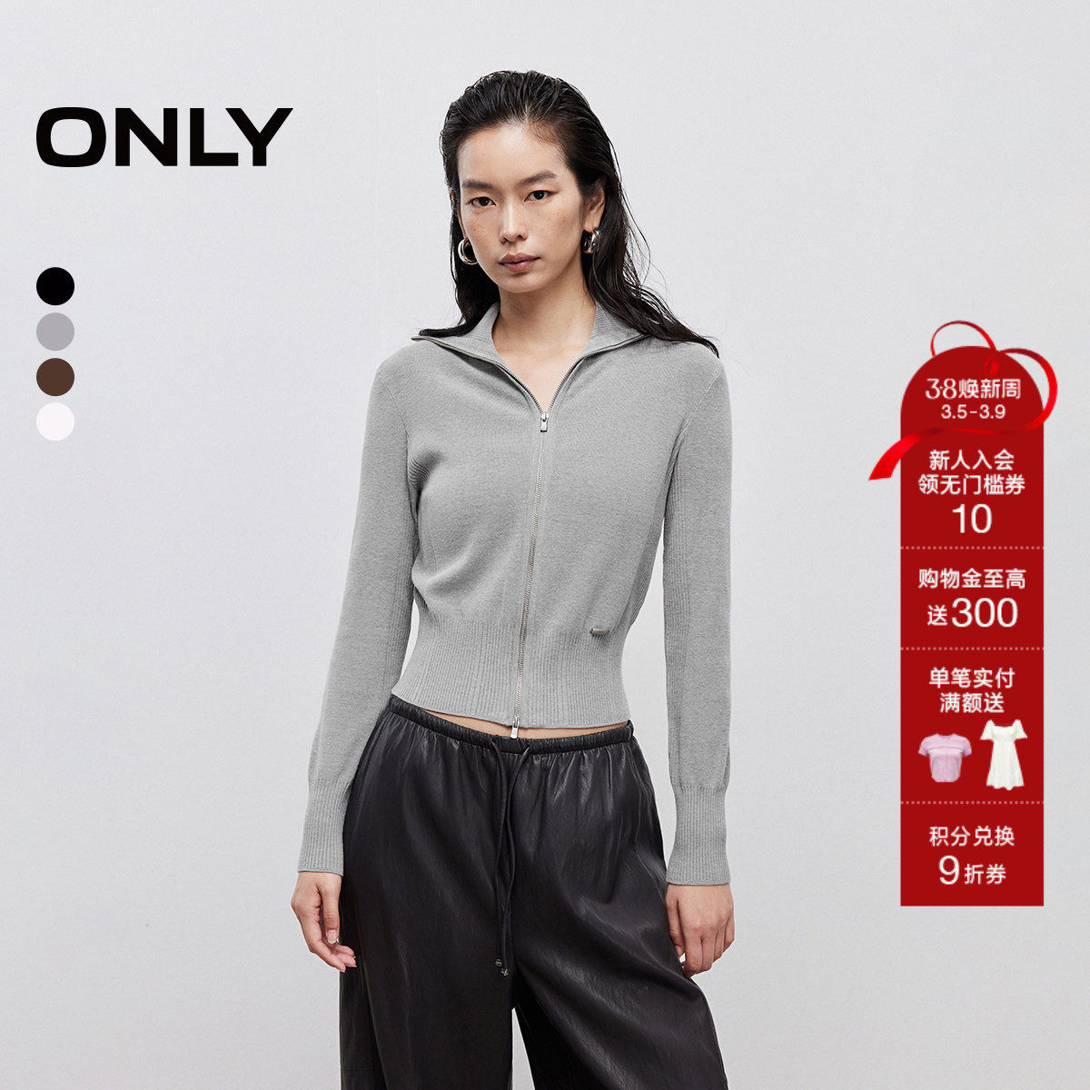 天猫ONLY官方旗舰店,ONLY双向拉链短款长袖针织衫,短款紧身上衣 实用双向拉链 保暖防风高领