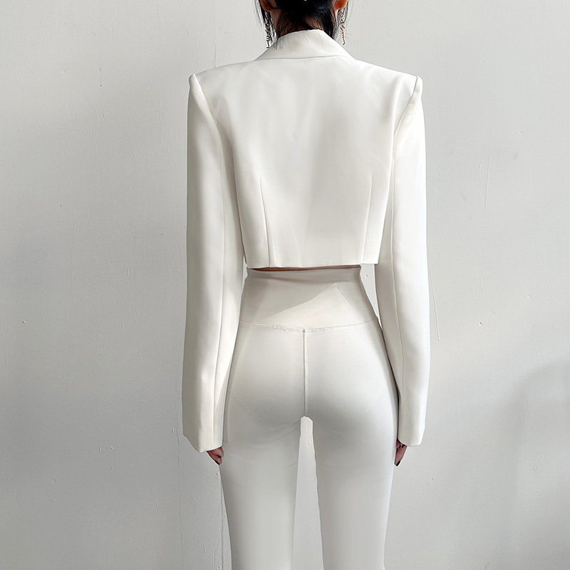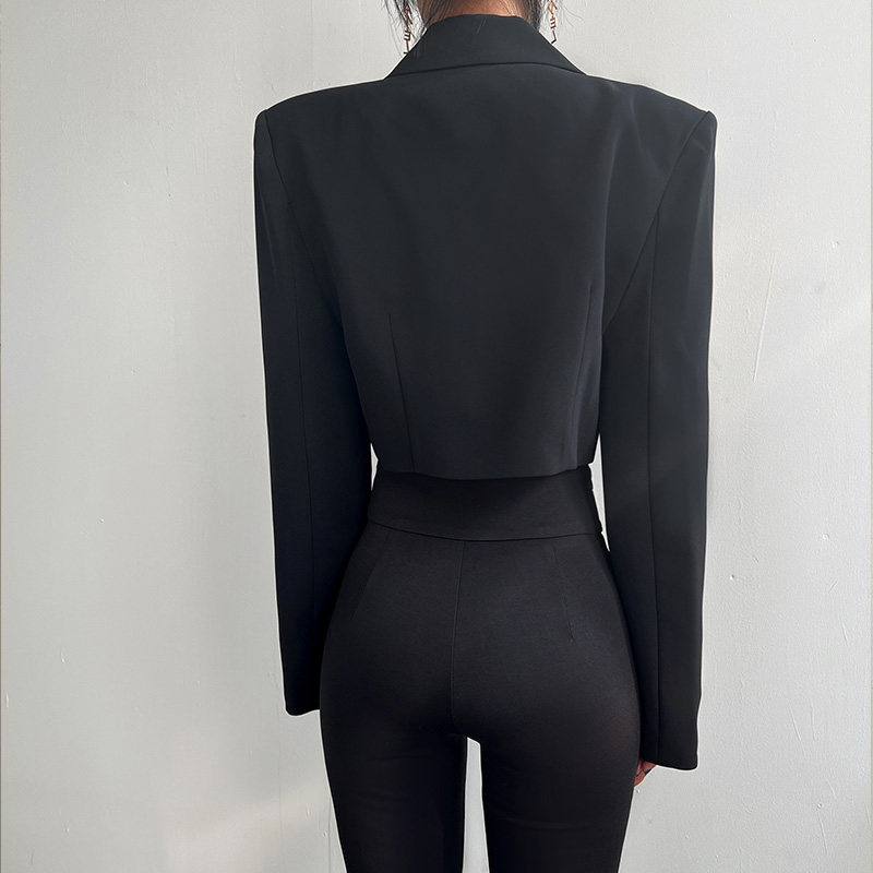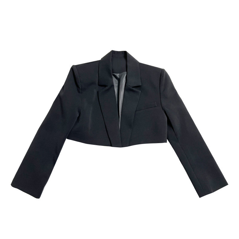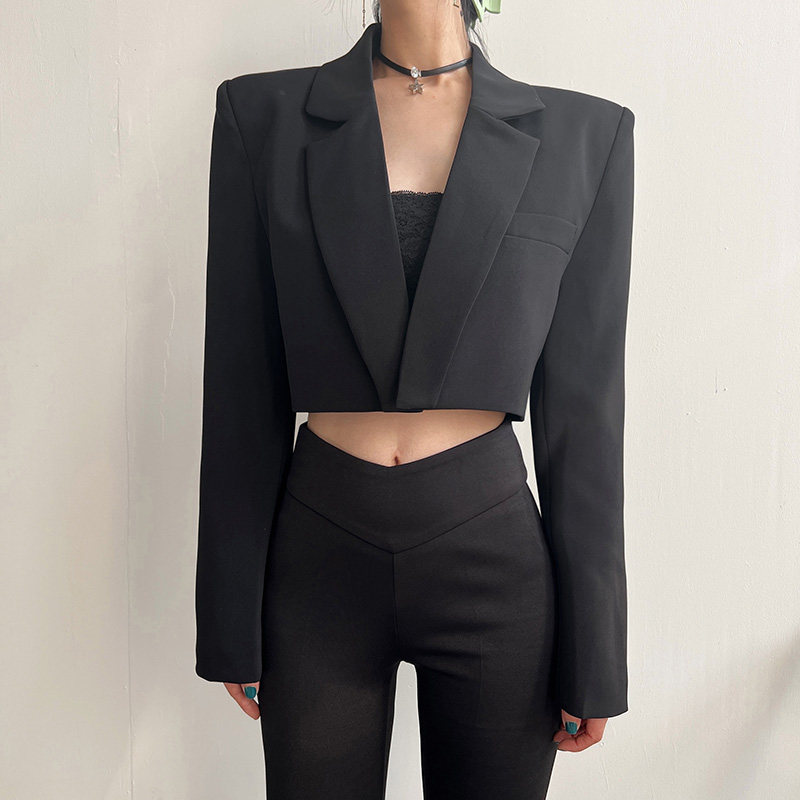高级感黑色垫肩短款西装外套女小众设计感白色小西服高腰露脐上衣