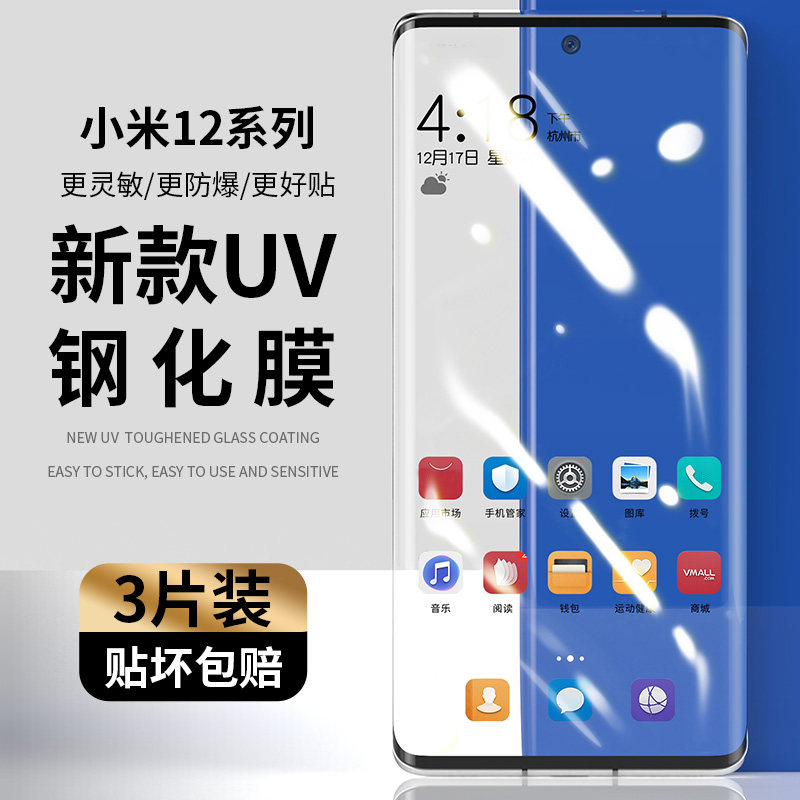 天猫it数码旗舰店,小米12pro钢化米12全胶uv曲手机膜,全胶全贴合,触控灵敏,指纹秒解,送固化大灯