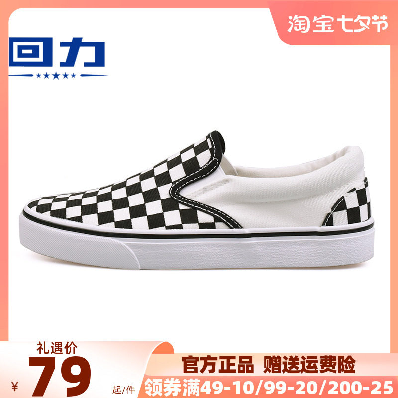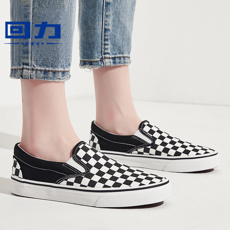 回力棋盘格鞋女帆布鞋女鞋2023夏季新款小白鞋一脚蹬女士休闲板鞋