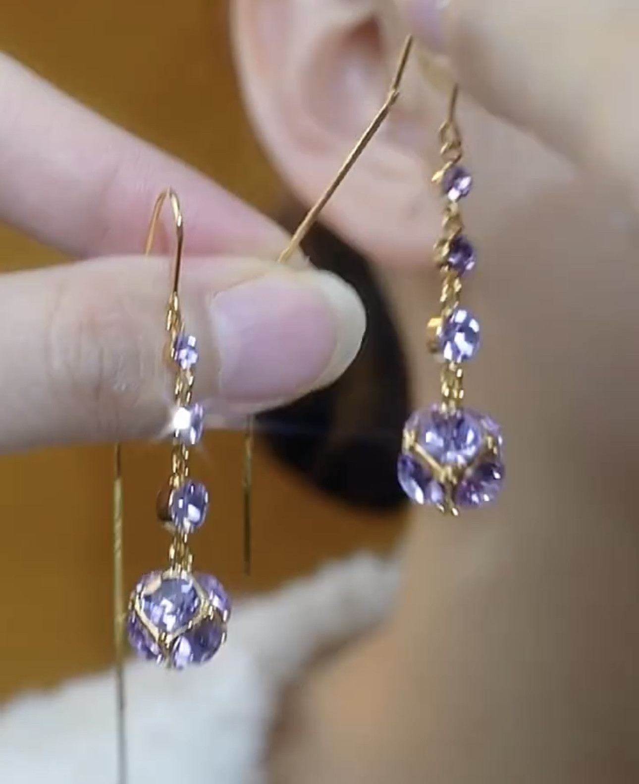 淘宝卡播娅,超仙紫色钻球锆石流苏耳线