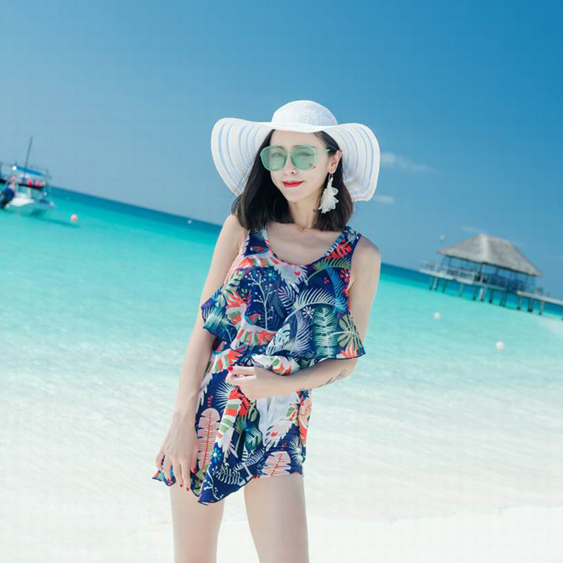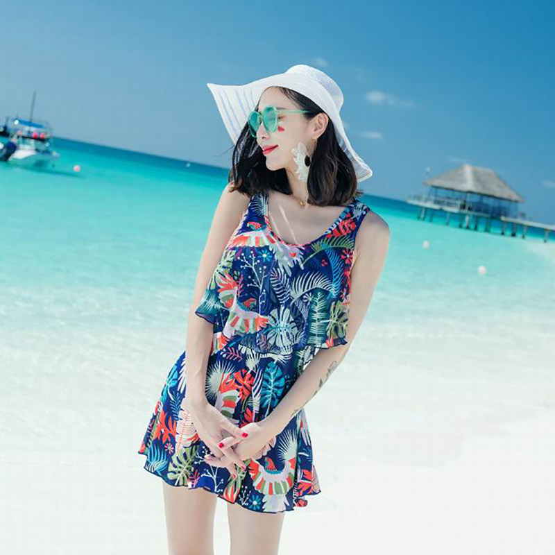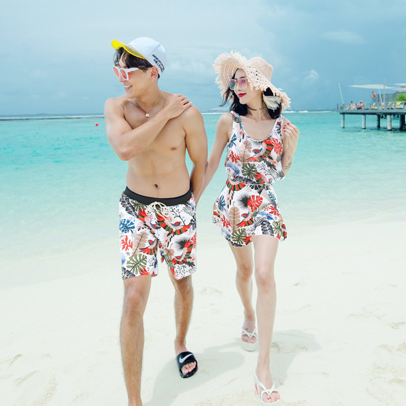 新款上市情侣泳衣女两件套连体裙显瘦遮肚保守男士沙滩裤泳裤奇海