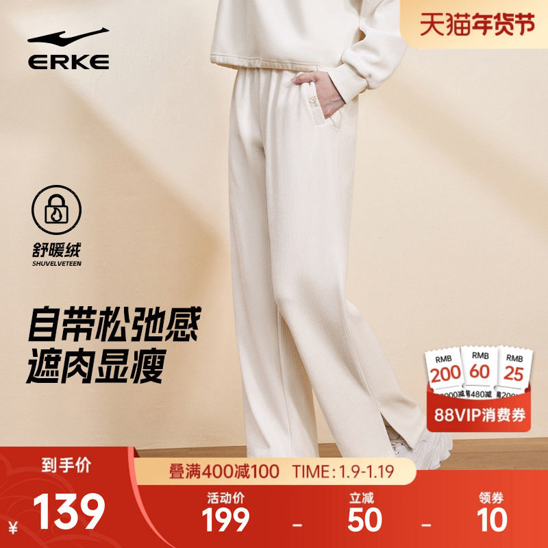 天猫鸿星尔克官方旗舰店,加厚运动裤鸿星尔克保暖阔腿裤,灯芯绒