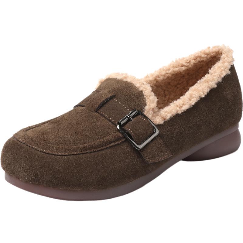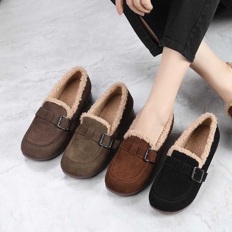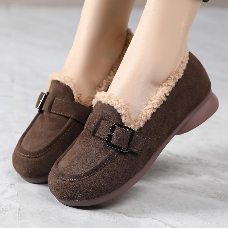 淘宝亲亲鞋业真皮女鞋,真皮外穿加绒毛毛女鞋冬季软底舒适勃肯鞋大码平底一脚蹬豆豆棉鞋
