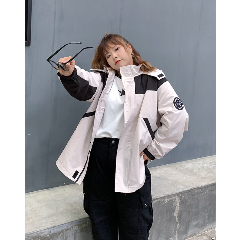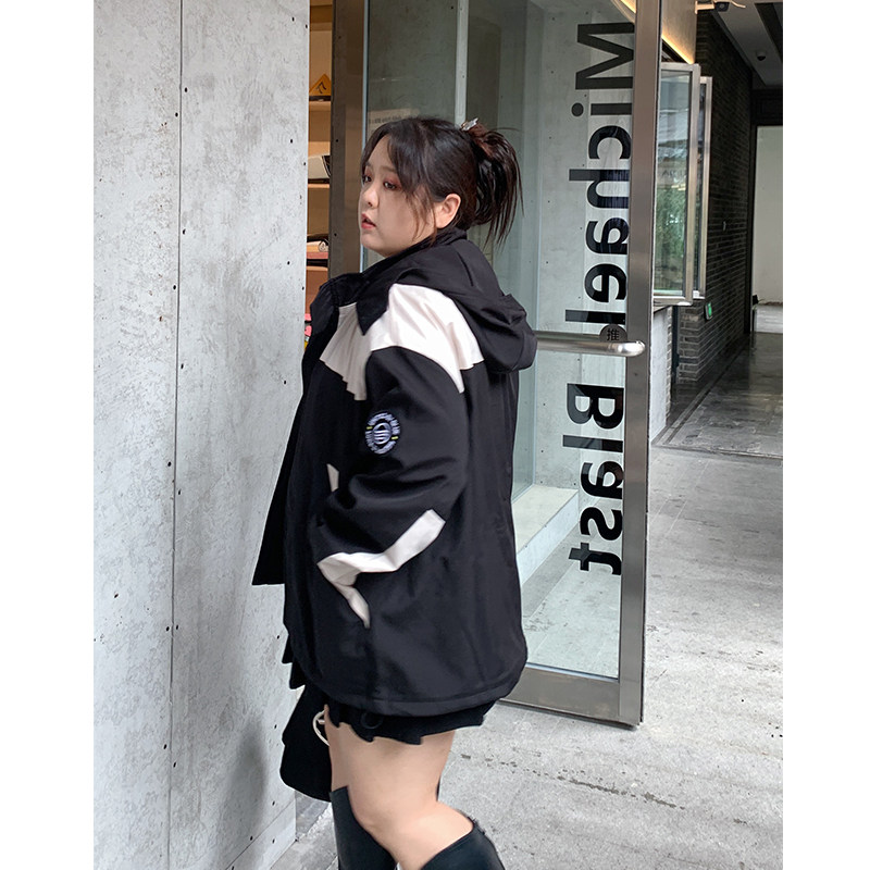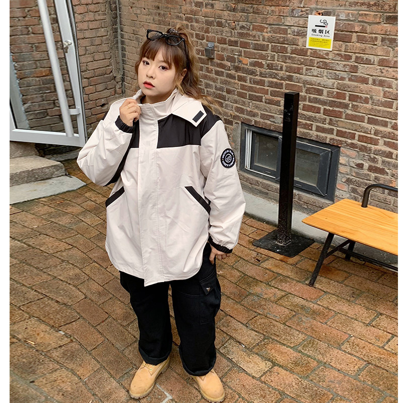Milu家大码女装秋季美式防水户外工装冲锋衣外套胖mm宽松机能夹克