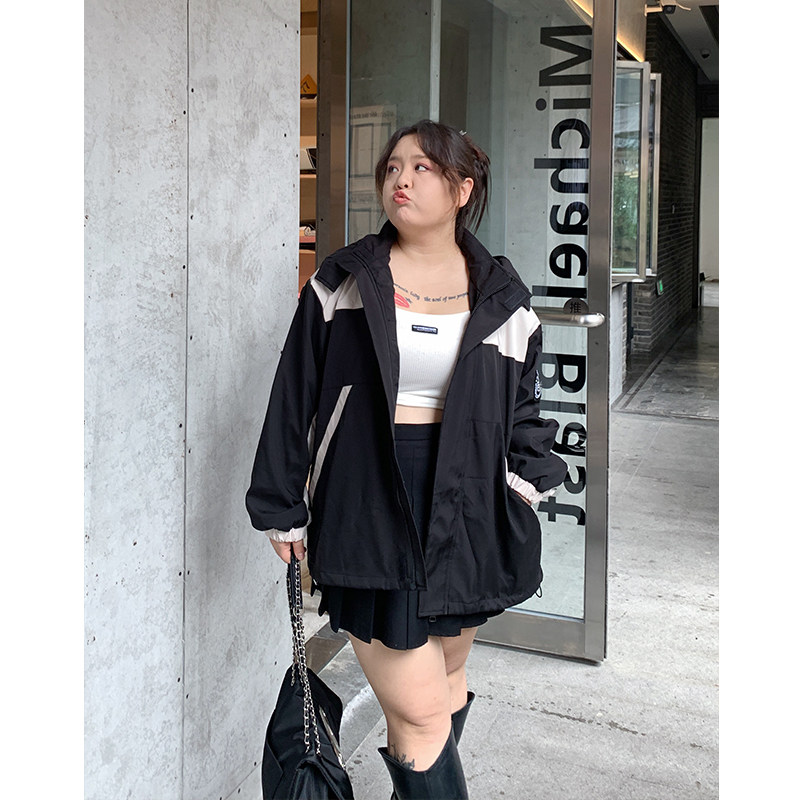 淘宝Milu家 大码定制女装,Milu家大码女装秋季美式防水户外工装冲锋衣外套胖mm宽松机能夹克