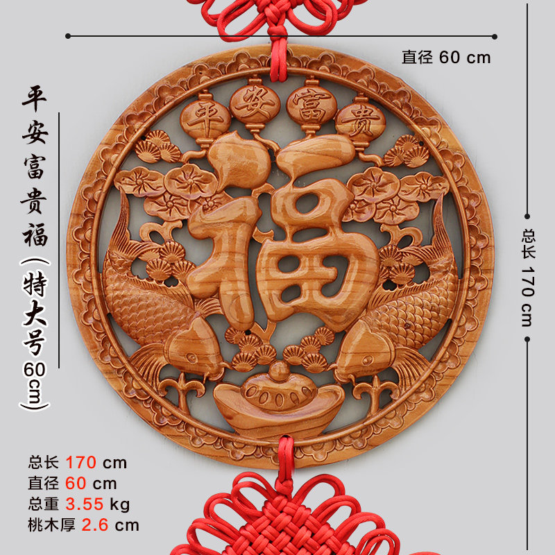 淘宝甜甜小店1365,中国结桃木挂件福字大号客厅木雕乔迁玄关背景墙家居壁挂吉祥装饰