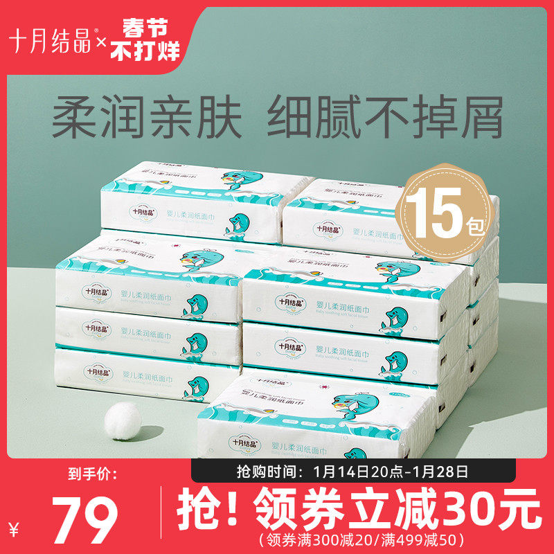 天猫十月结晶旗舰店,十月结晶软抽纸宝宝手口专用柔润*,原生木浆 食品级FDA认证 柔软不刺激