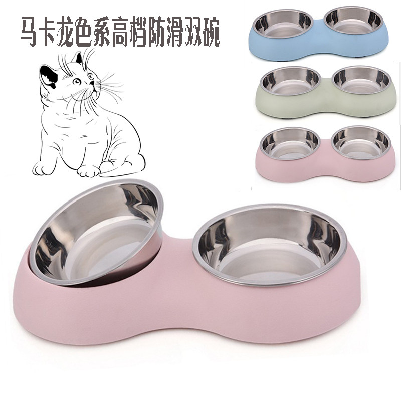 淘宝先锋宠物中心,马卡龙色系高档三色防滑猫盆狗盆