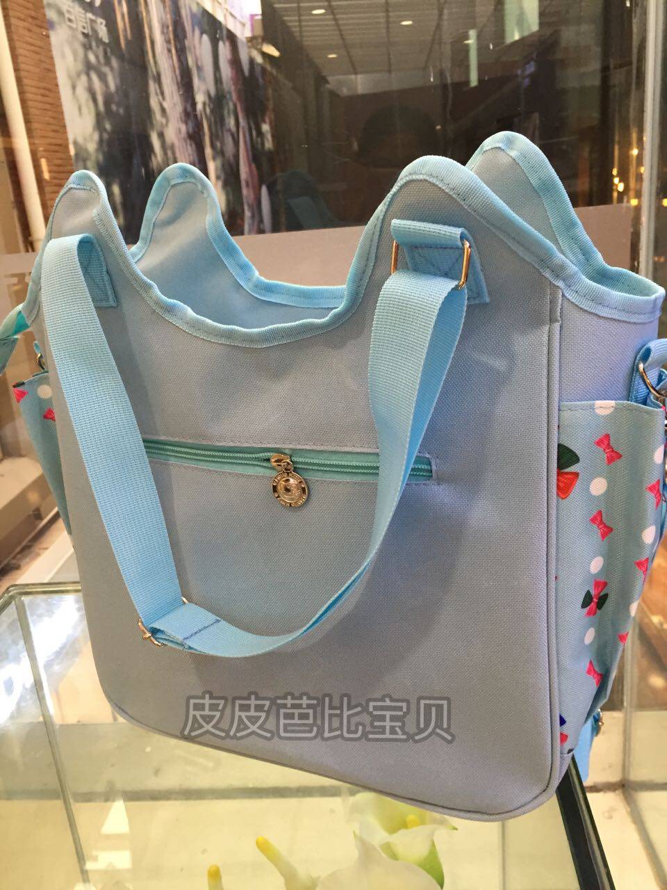 淘宝皮皮芭比宝贝,小清新蝴蝶结印花单肩手提妈咪包