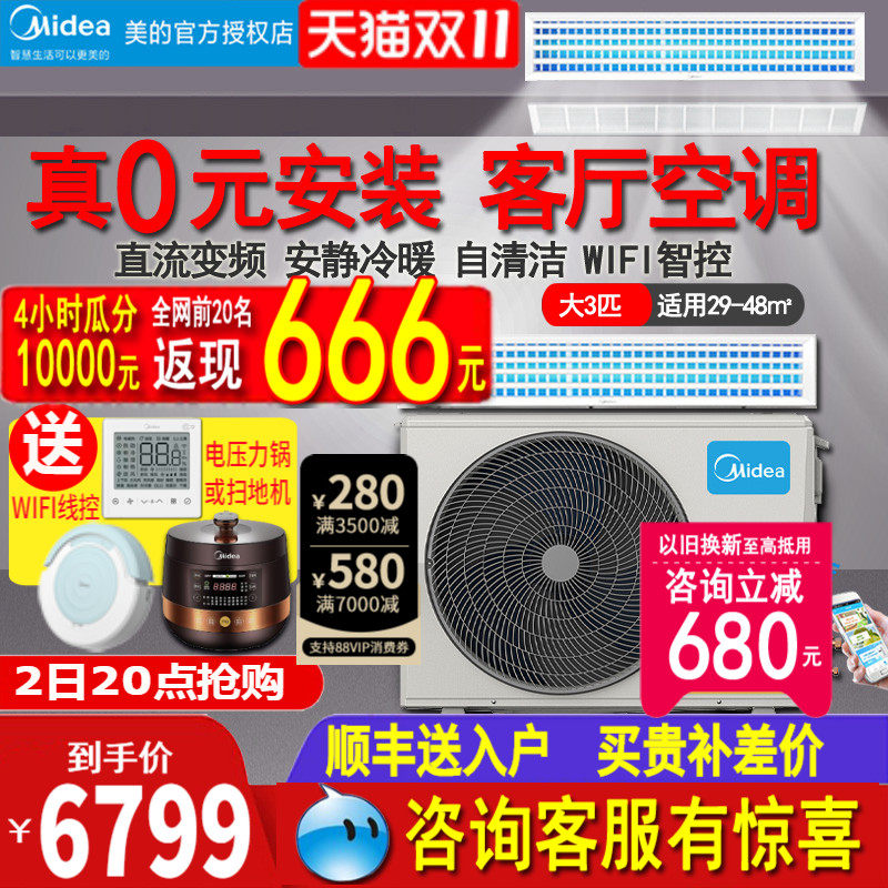 天猫midea美的华浪专卖店,美的大3匹变频变频风管机,直流变频 WIFI智控 节能冷暖无电辅 0元安装