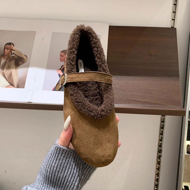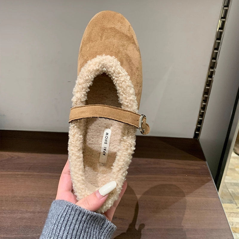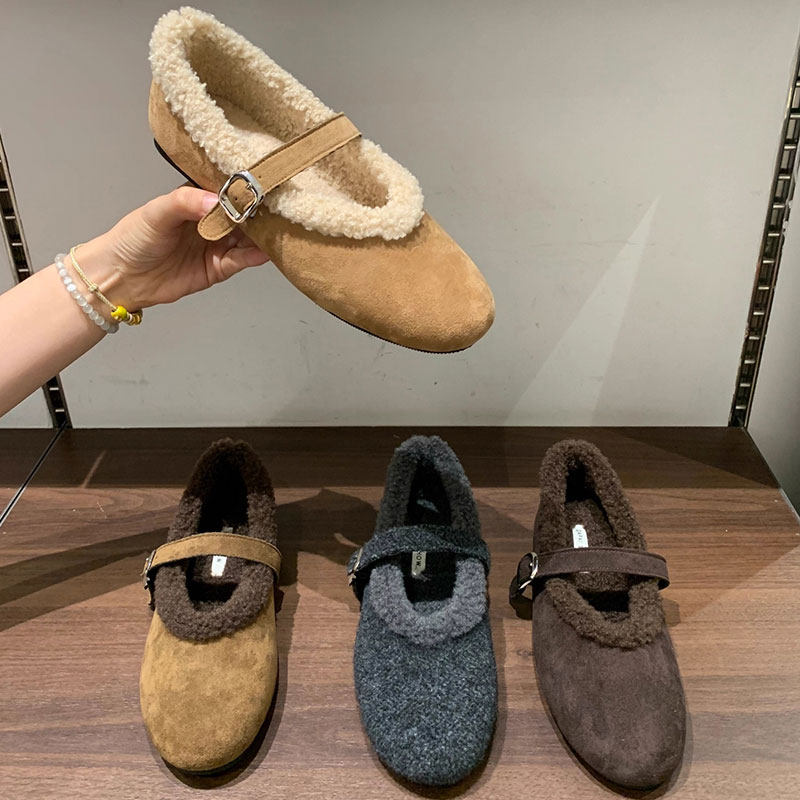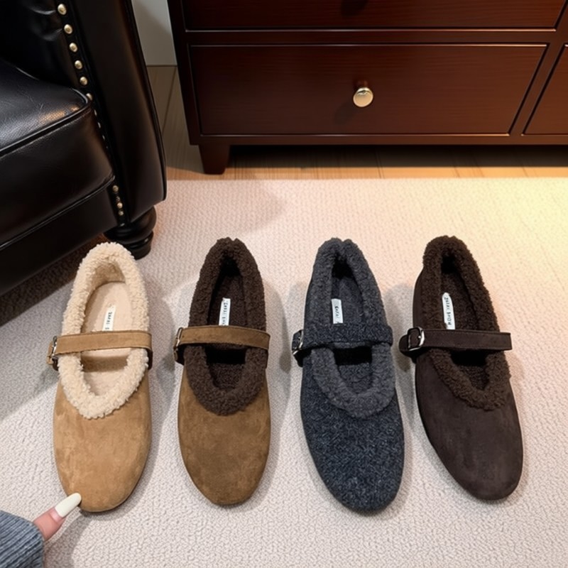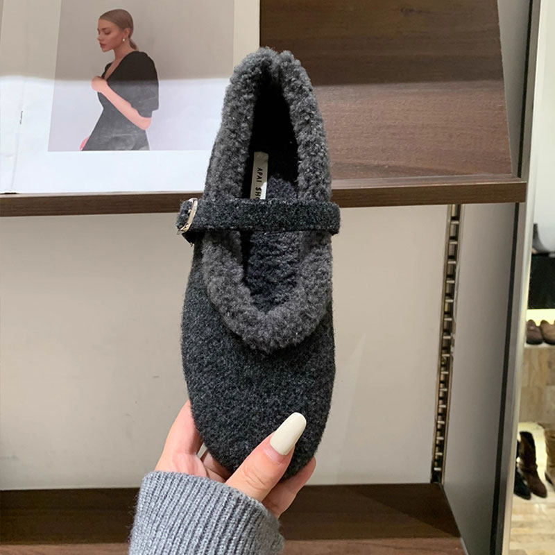 天猫淘工厂美妆直营,法式平底加绒毛毛鞋女2025秋冬新款保暖玛丽珍鞋勃肯鞋棉鞋子灰色
