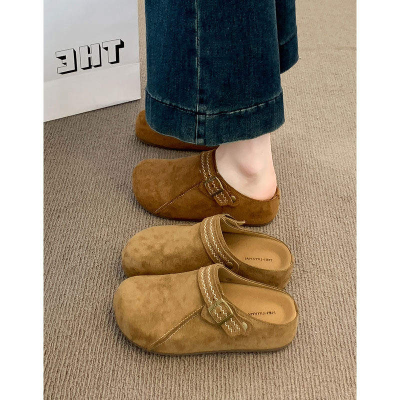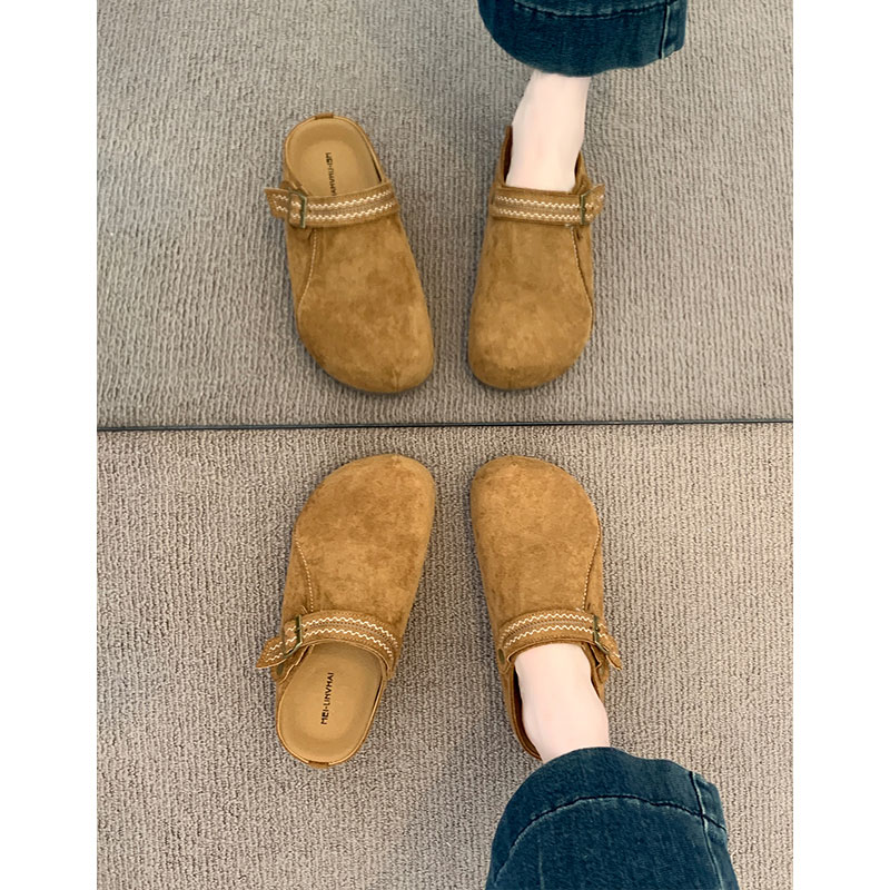 天猫天天特卖工厂店,勃肯鞋包头半拖鞋女2025新款秋冬加绒爆款一脚蹬孕妇鞋子内增高