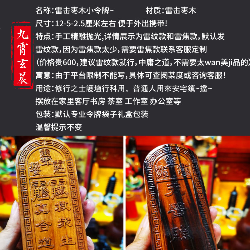 淘宝五台山真武文化馆,天然雷击枣木小款式令牌
