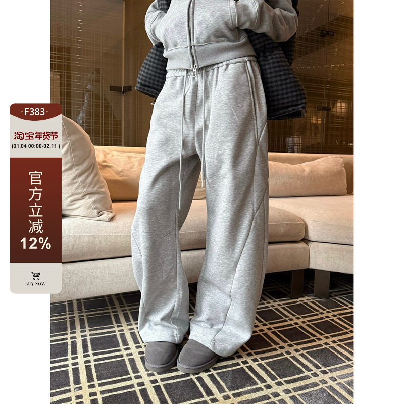 秋冬加绒加厚灰色显瘦直筒卫裤女券后价¥92vc衣柜 5 小时前