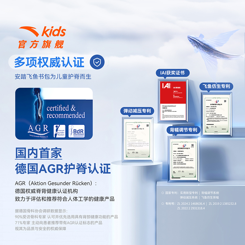 天猫anta安踏童装旗舰店,动态护脊飞鱼书包商场同款,防泼水.平衡减压科技4.0