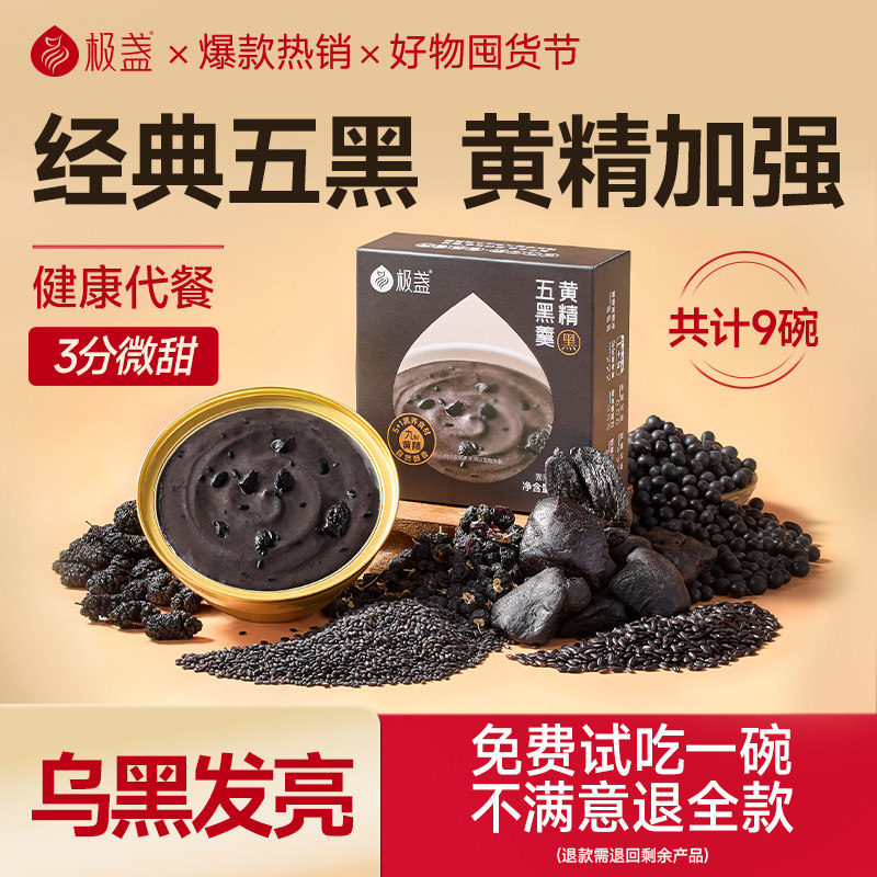 天猫极盏旗舰店,极盏黄精五黑羹,以黑养黑!,以黑养黑 营养代餐 开盖即食