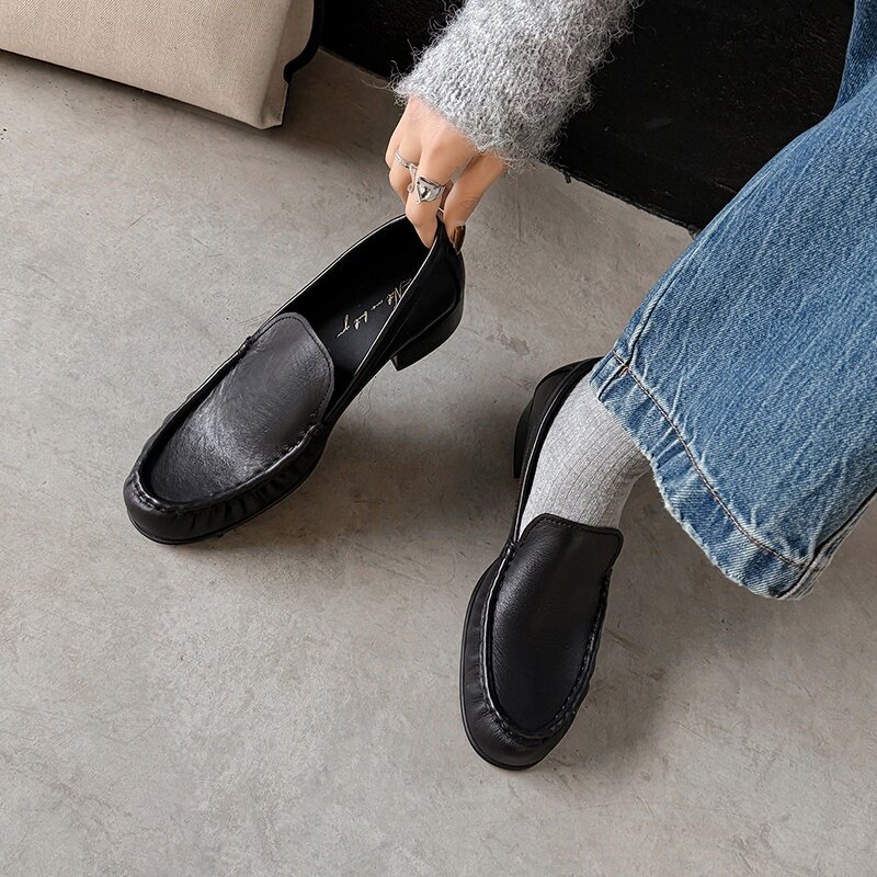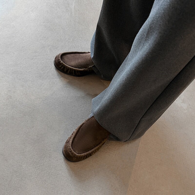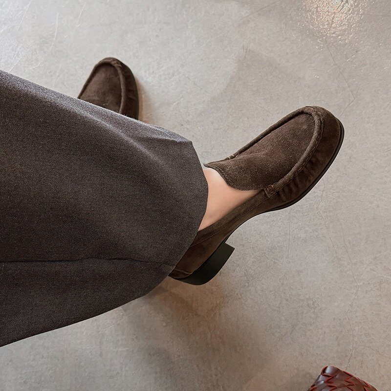 淘宝darling真皮女鞋,5cm真皮反绒一脚蹬乐福女鞋