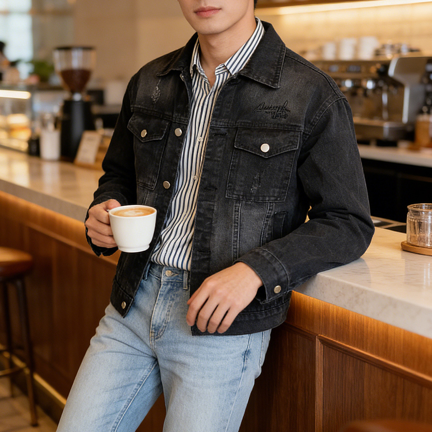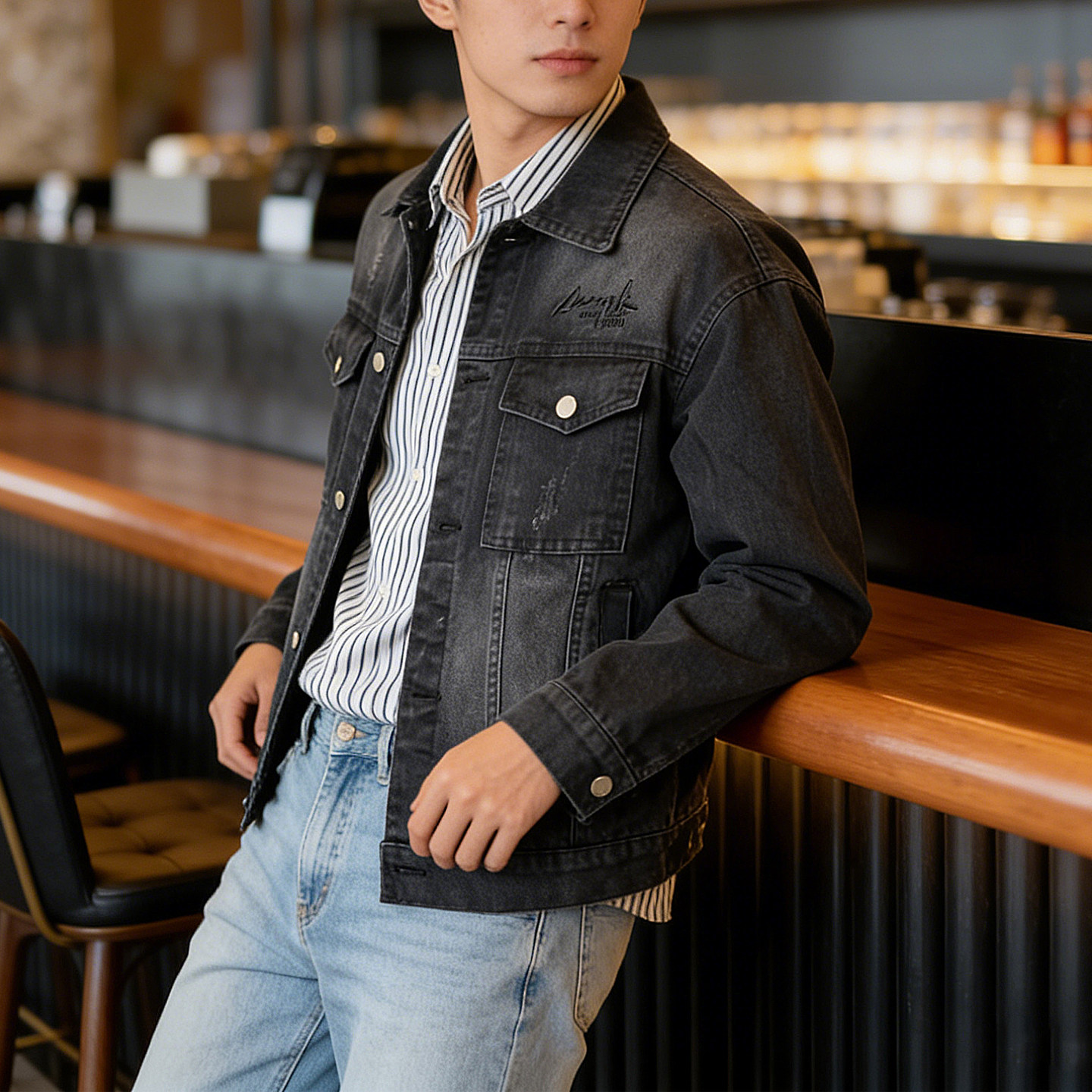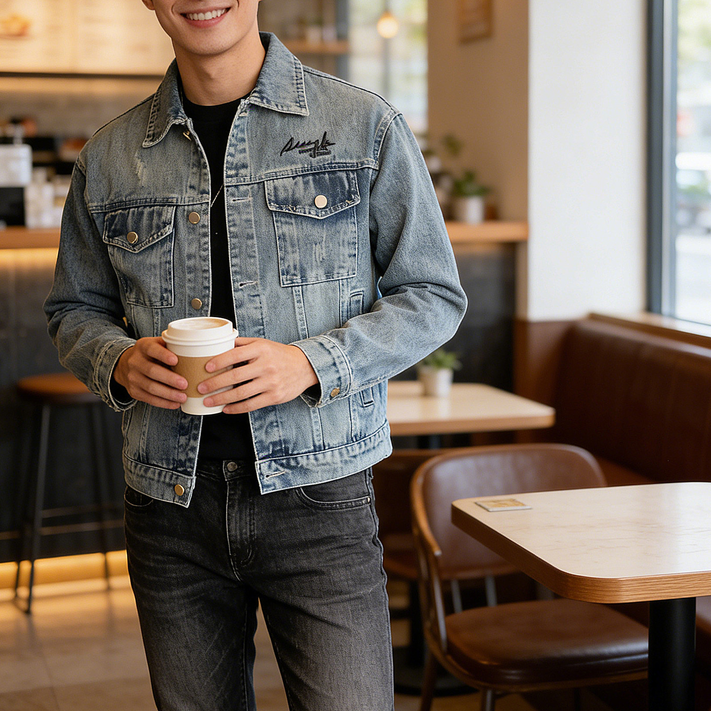 淘宝有间潮店coolman,美式高街复古修身男士牛仔外套