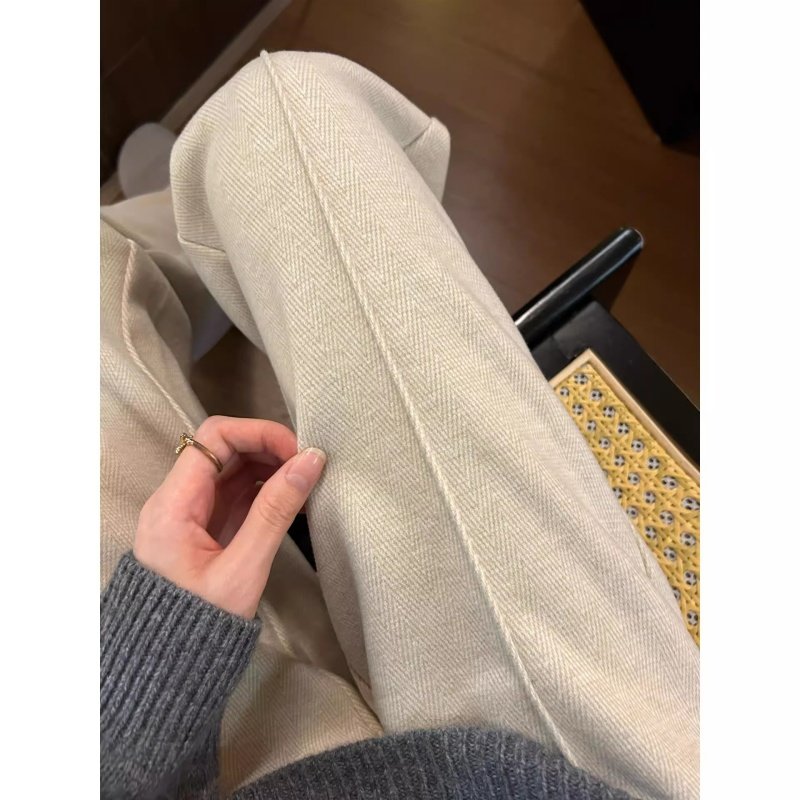 天猫淘工厂美妆直营,加绒加厚窄版阔腿裤女2025新款秋冬季垂感高腰毛呢裤子直筒裤大码