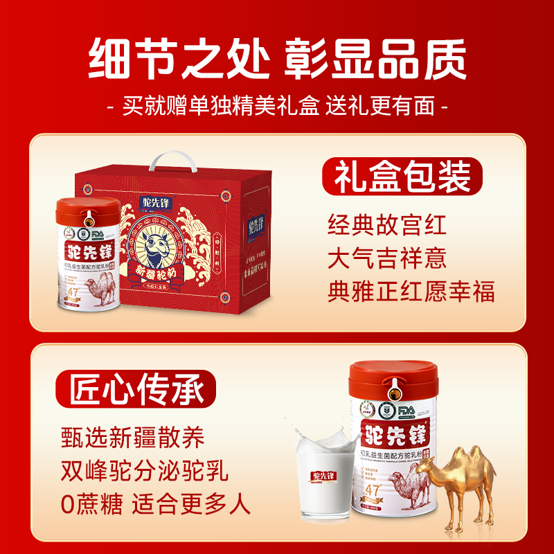 天猫驼先锋旗舰店,初乳益生菌驼乳粉礼盒装2罐,初乳配方 无蔗糖 尿糖三高放心喝 送礼佳品