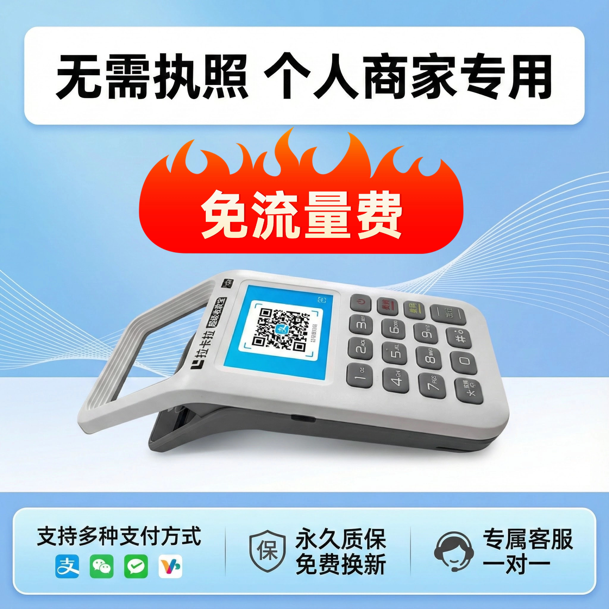 淘宝拉KA拉收款品牌店,免流量费,个人秒到收款机