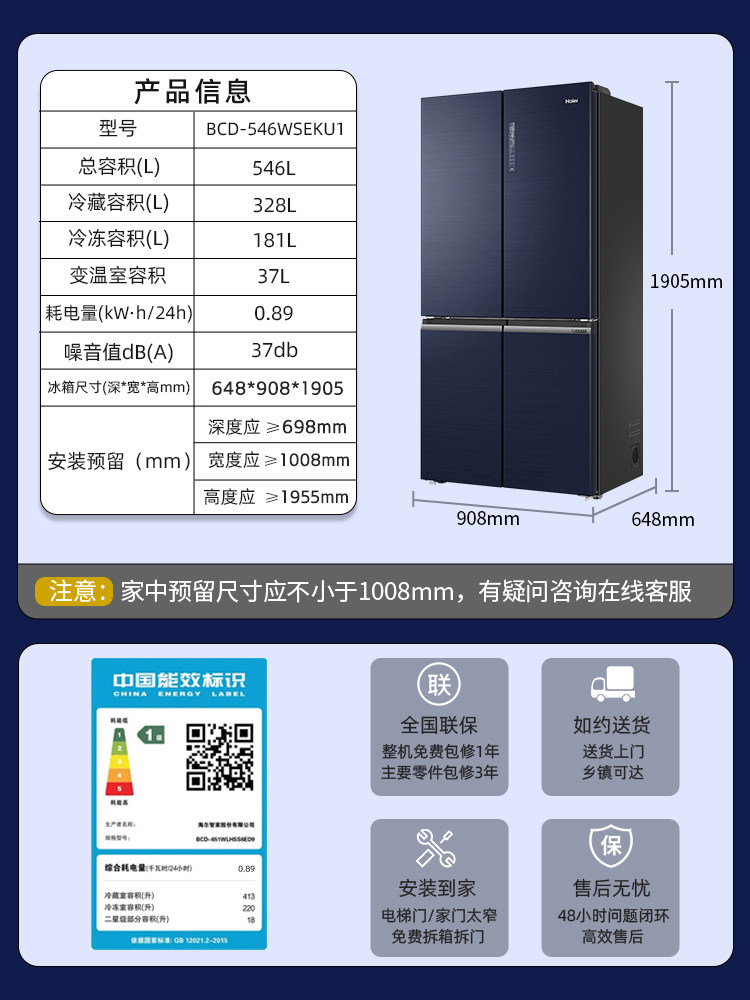 天猫海尔冰箱冷柜旗舰店,【全空间保鲜】海尔546l十字电冰箱,全空间保鲜,EPP超净系统,深海蓝外观